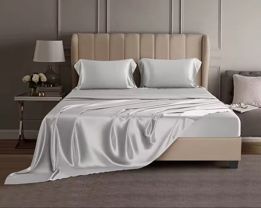 Parure de lit [ Drap housse-Drap plat-4 taies d'oreiller ] Soie 100% pure de murier 22 mommes