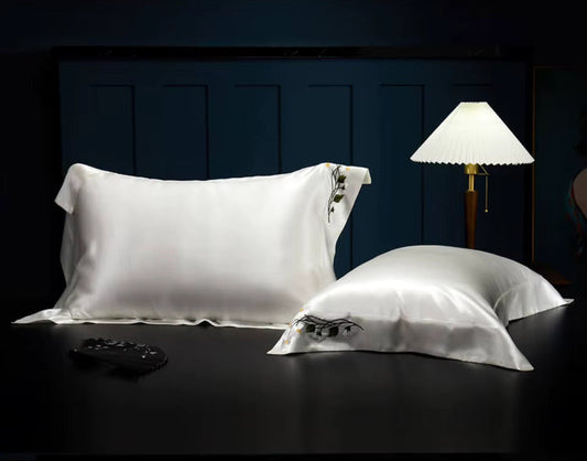 Taie d’oreiller luxe en soie 25 mommes – Broderie à la main Suzhou Petites Marguerites 🌼 Daisy Rêveuse – La douceur des prés